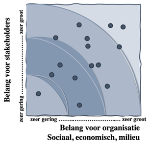 Een materialiteitsmatrix laat zien hoe de belangen van de organisatie zich verhouden tot de belangen van de stakeholders.