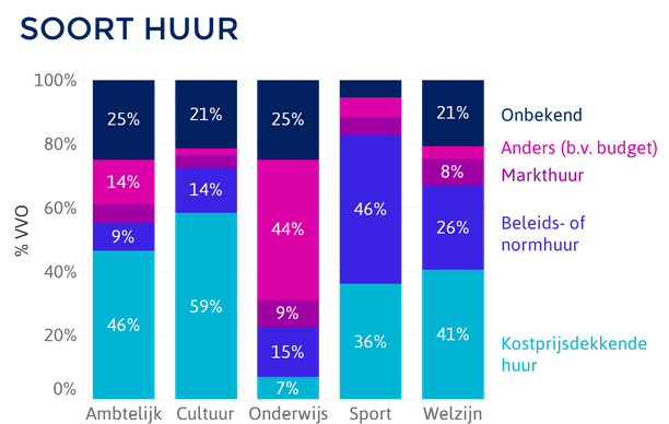 Veel vastgoed dat wordt verhuurd aan maatschappelijke instellingen of verenigingen die via verschillende wegen subsidie ontvangen is door de gemeente aangemerkt als algemeen belang. De feitelijke kosten voor het vastgoed worden in deze gevallen niet doorberekend aan de huurder, laat staan dat er een markthuur wordt gerekend. Uit de benchmarkdata blijkt dat dit vastgoed vaak een gesubsidieerde huurvorm kent. Met name in de sport zien we dat veel vastgoed een beleids- of normhuur kent waarin al een vorm van huurkorting is verwerkt.