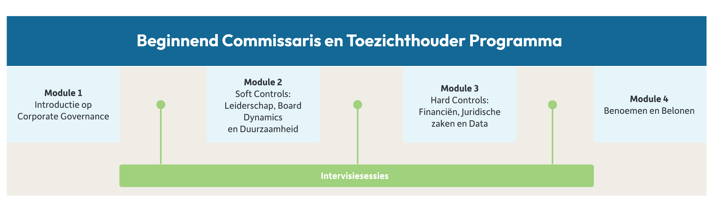 Als toezichthouder of commissaris moet je beschikken over competenties en vaardigheden, waarmee je de content en context eenvoudig kunt doorgronden. Het gaat hier dan voornamelijk om de content van de tactische en strategische bedrijfsvoering versus het grotere plaatje, de context, die jij als commissaris of toezichthouder nog meer mee moet nemen in jouw rol. Jouw rol en impact als commissaris of toezichthouder is wezenlijk anders dan de rol waarin je tot nu toe hebt geëxcelleerd. Van een meer uitvoerende rol ga je naar een rol met meer afstand. Dit vraagt om nieuwe inzichten en vaardigheden, zowel op het gebied van hard controls als soft controls, die je direct in de praktijk kunt toepassen. Door je kennis en vaardigheden te verrijken, kun je snel je weg vinden als toezichthouder of commissaris. Het Beginnend Commissaris en Toezichthouder Programma is er om je gedegen voor te bereiden op de volgende stap naar de boardroom. Je volgt (online)colleges bij topprofessoren en praktijkexperts die kennis hebben van actuele wet- en regelgeving, maar die je ook, minstens zo belangrijk, leren hoe je de juiste dynamiek creëert in de boardroom.